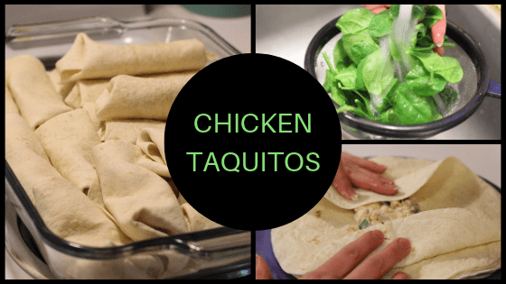 These Chicken Taquitos have a crisp outer shell and a cheesy, chicken inside. They would be great to bring for a party appetizer if you make them half the size with smaller tortillas. And don’t worry, there are step by step pictures on how to fold the taquitos! So, let’s get started!